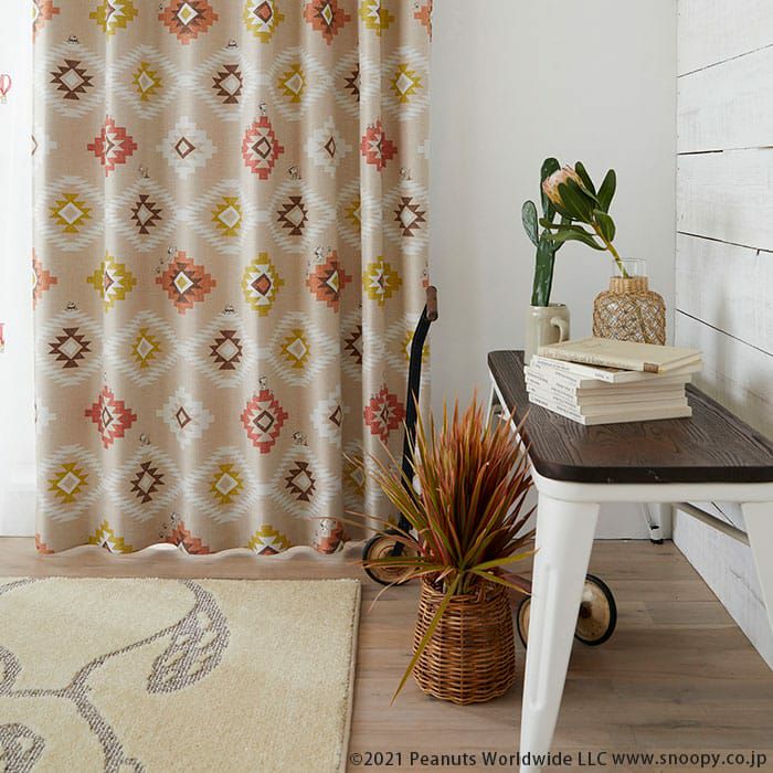 アウトドアを楽しむスヌーピー柄カーテン