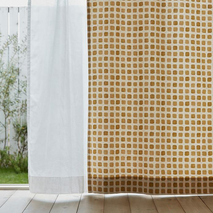 手書きスクェア型ドット柄。ナチュラル綿麻カーテン