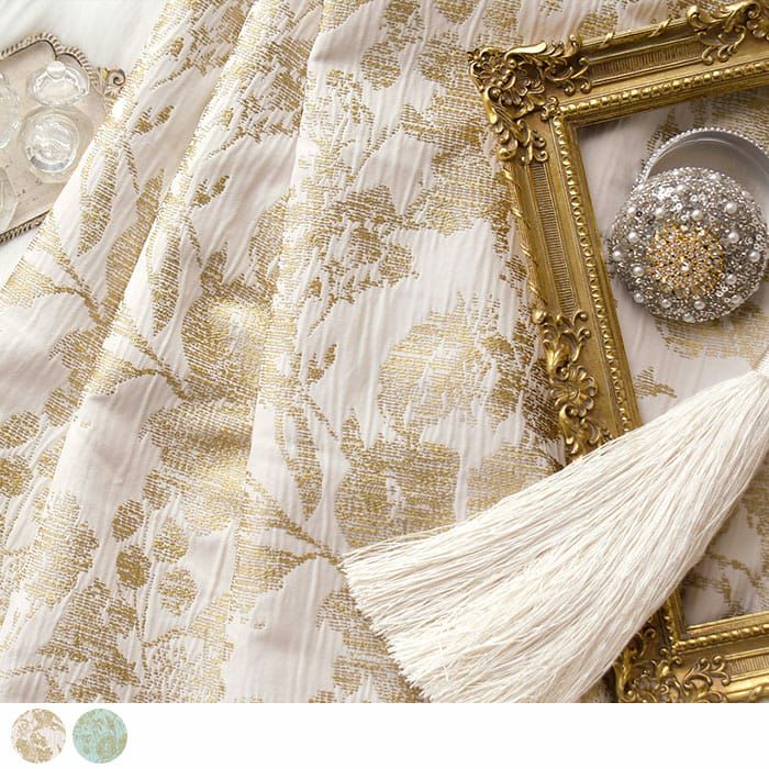 ▲ゴールド 光沢のあるゴールドの糸がラグジュアリーな雰囲気を演出します。 繊細な表情の点描風の花柄で高級感あふれるお部屋に。 エレガントな2倍ヒダもおすすめですが、柄を生かしてフラット仕様にしても◎
