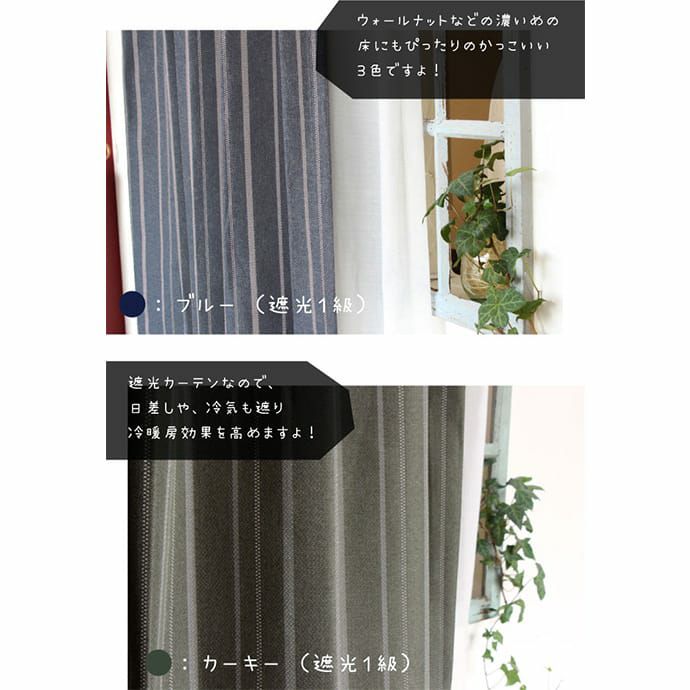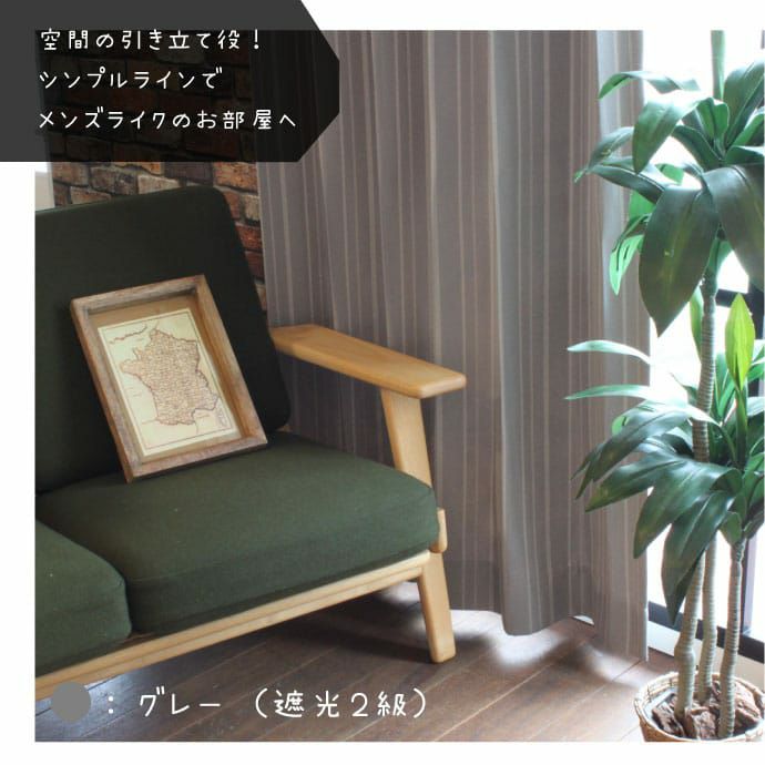 落ち着いた色合いとシンプルなストライプが大人のお部屋を演出します。 1級遮光だから朝までぐっすり眠れて、 メンズのお部屋にもおススメです。 おさまりのよいドレープを出す形状記憶加工付きがおすすめです。
