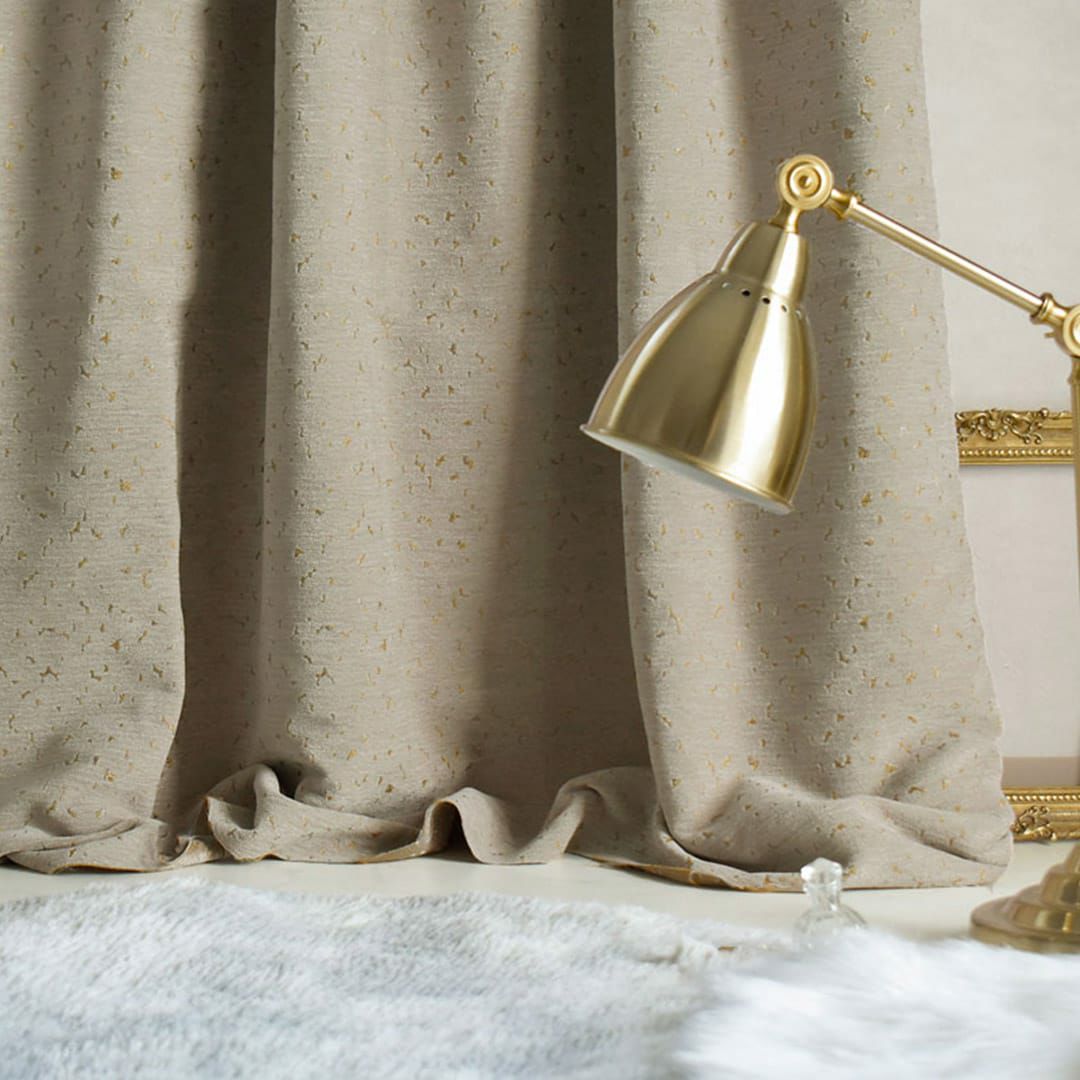 お部屋をちょっと上質な空間にしてくれる 石目調デザインのモダンでリッチな防炎カーテン