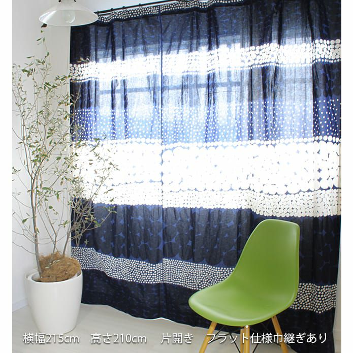 生地をカーテンに仕立てる際、製作幅が大きい場合は生地を横に繋いでいくので カーテンの仕上がり幅によっては継ぎ目ができます。(継ぎ目の位置指定はできません。) 詳しくはこちらをご確認ください。