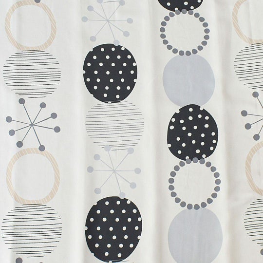 ※写真は全て1.5倍ヒダ(形状記憶付き)です。 当店のオリジナルデザインなのでここだけしか買えません! かわいい丸柄にモノトーンな色合いが モダンな印象を与えてくれる北欧ライクなカーテンです。