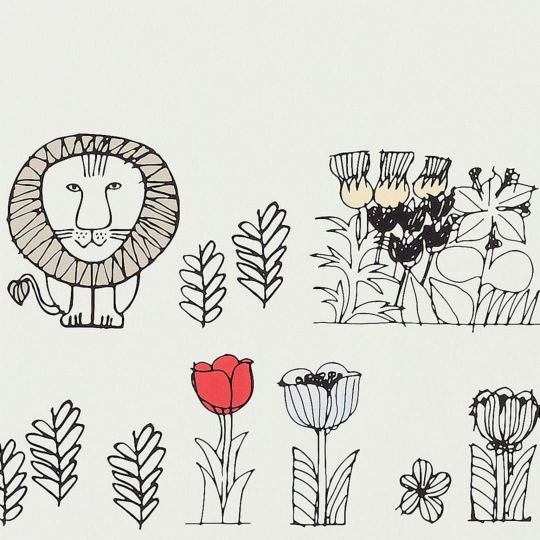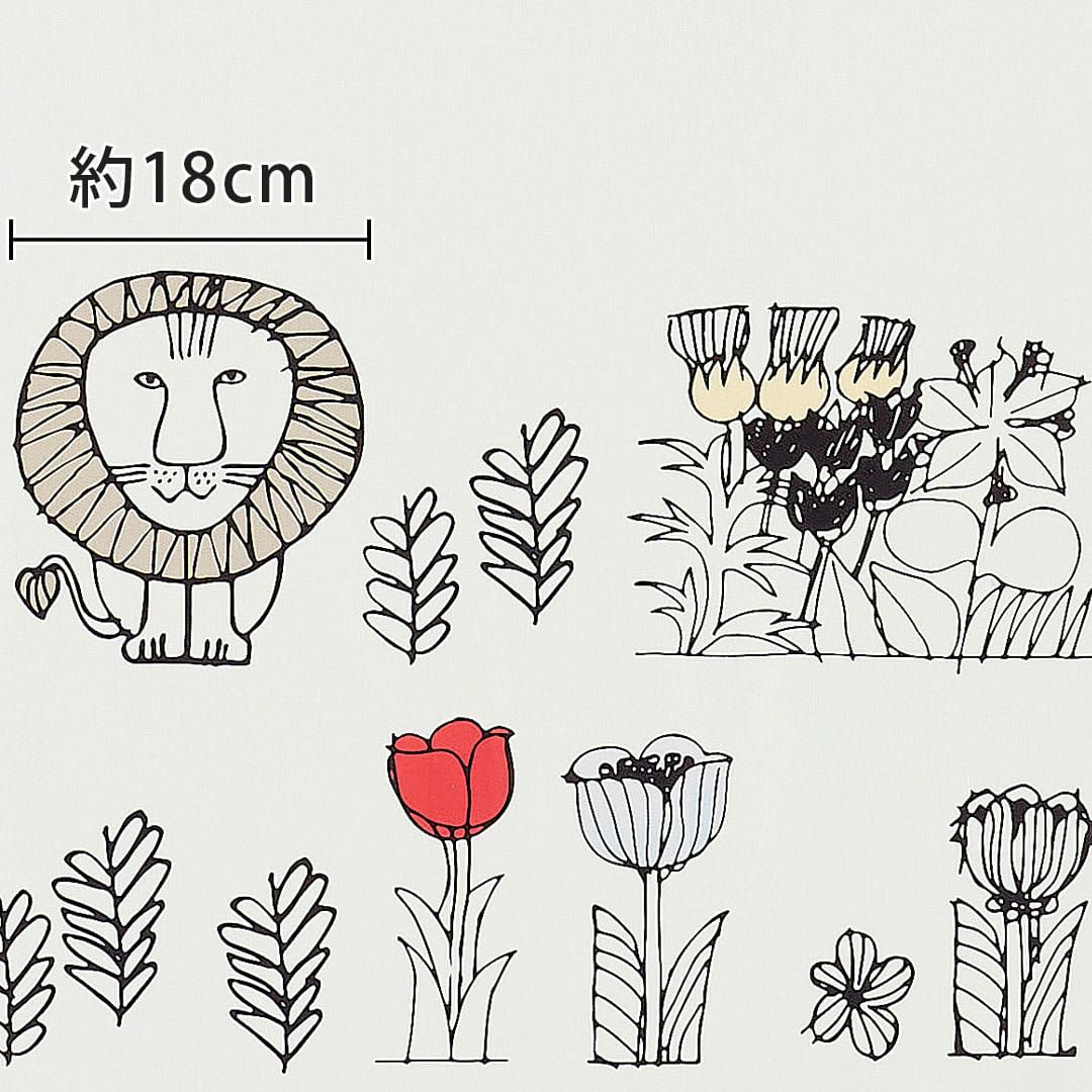 北欧カーテン「リサ・ラーソン」シリーズ さまざまなお花に囲まれた、ころんとしたフォルムで愛嬌たっぷりな"ライオン" 綿素材が醸し出すナチュラルな風合いと上質な質感も魅力的です
