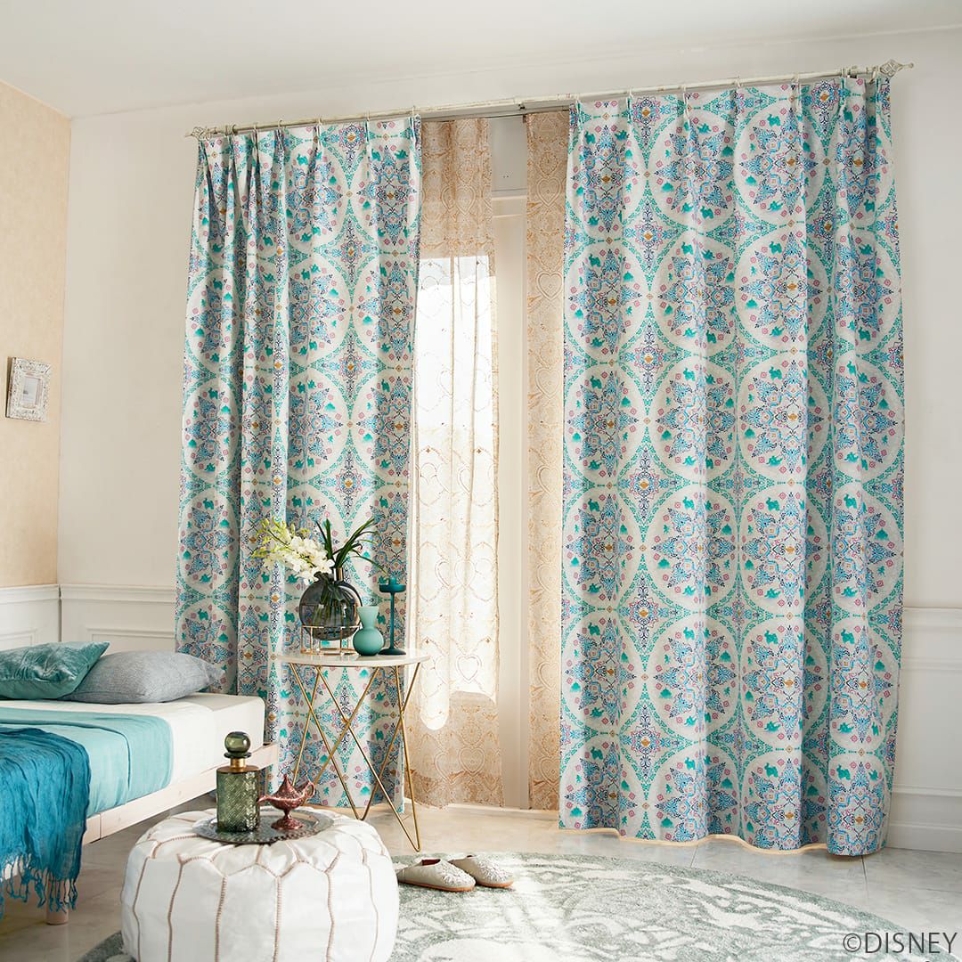 ジャスミン達が隠れた幾何学模様のドレープカーテン 【遮光カーテン】マジックランプ|PRINCESS(プリンセス)|ディズニー