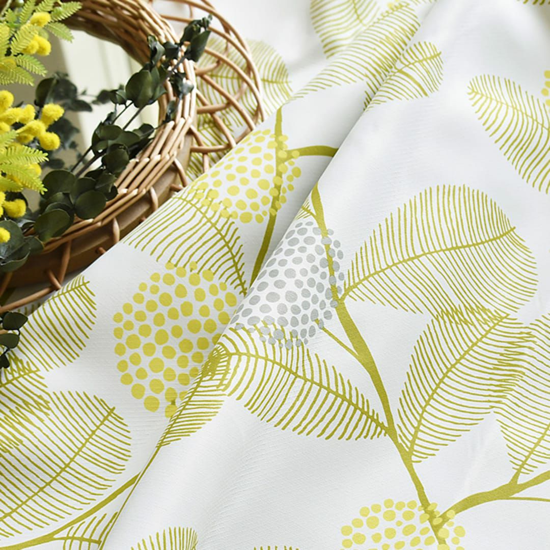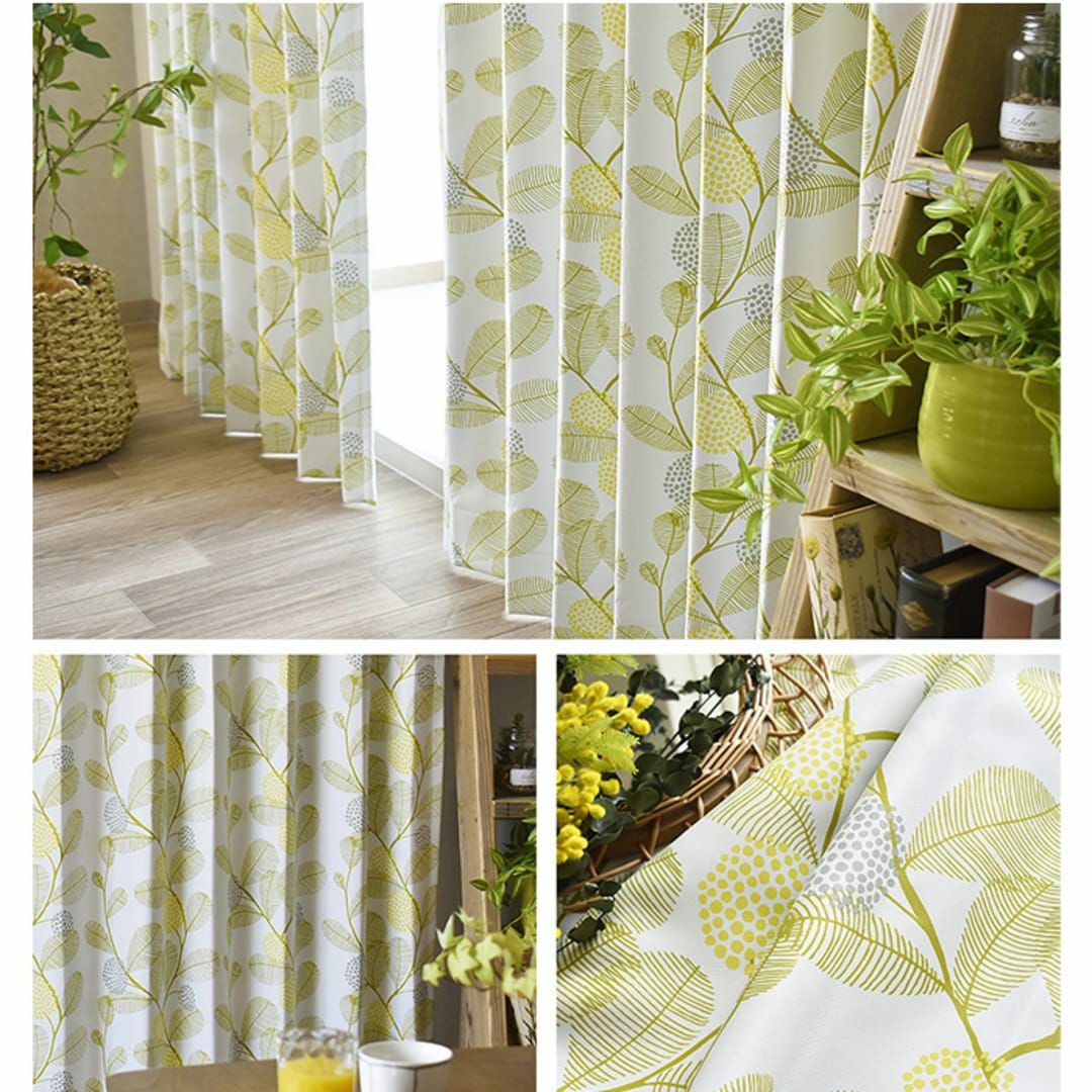 北欧の森シリーズのナチュラルなデザインのカーテンです。 北欧の自然を思わせる明るく優しいミモザ柄です。ナチュラルな空間にピッタリの3色。 ※写真は全て1.5倍ヒダ(形状記憶加工あり)です。