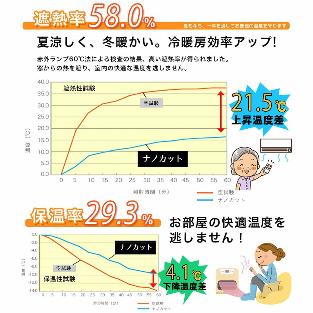 赤外ランプ60℃法による検査の結果、高い断熱率が得られました。 窓からの熱を遮り、室内の快適な温度を逃がしません。