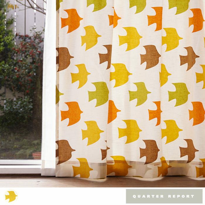 QUARTER REPORTの北欧カーテン 鳥のシルエットが羽ばたく北欧プリント 同系色の鳥が大空に羽ばたきます。 色鮮やかでお部屋がパッと華やかになります。