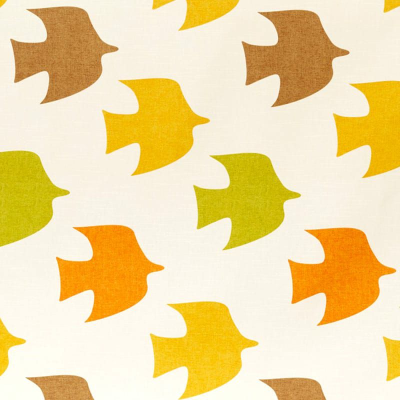 綿100%素材|たくさんの鳥が羽ばたく北欧プリント