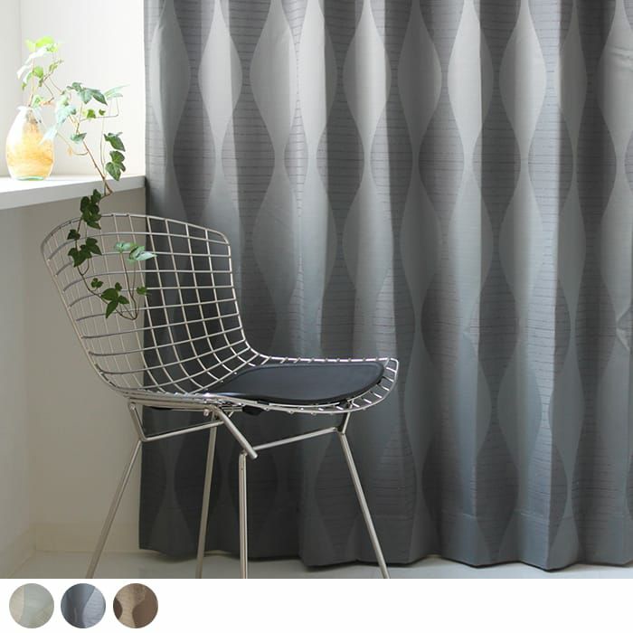 ▲グレー 存在感がありながらもインテリアに溶け込むカーテンがついに登場。 光沢のあるウェーブラインと素材感のある地模様が見事にマッチング。 落ち着いた雰囲気も優しい雰囲気もゴージャスな雰囲気も併せ持っているので、 いろいろなお部屋にお使いいただけます。