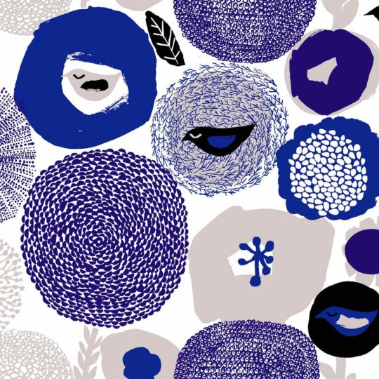 マッティ・ピックヤムサがデザインした 花々に囲まれながら休養する鳥達のモチーフのカウニステの人気デザインです。