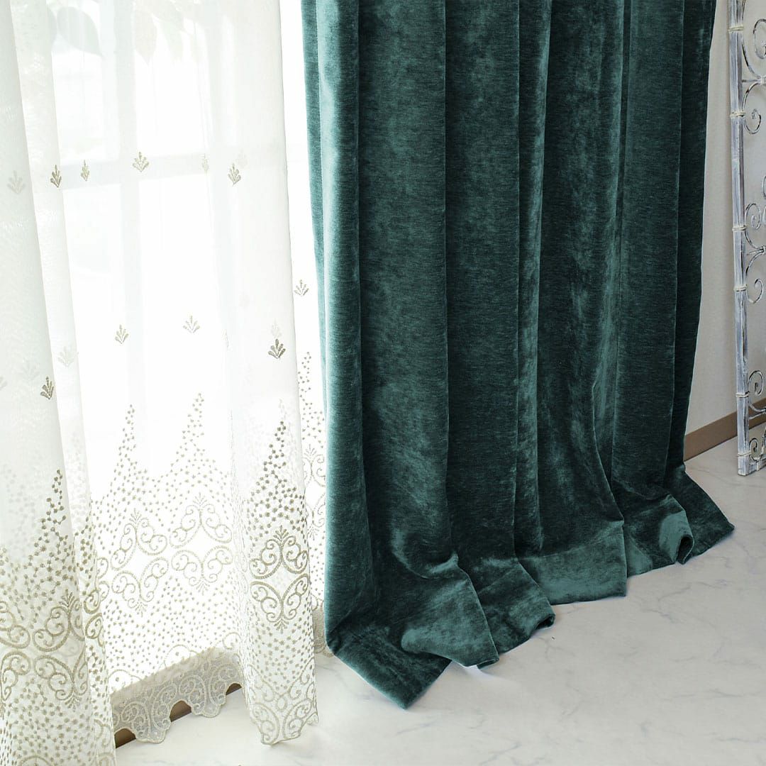 エレガントさを求めるなら淡い色、重厚感を求めるなら濃い色がおすすめです。 遮光カーテンなので光を遮ってくれます。