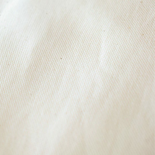 どこか懐かしい生成りのコットン。ほっとする柔らかな手触りです。 生地に含まれている天然素材特有のネップが、良い味わいをもたらしています。