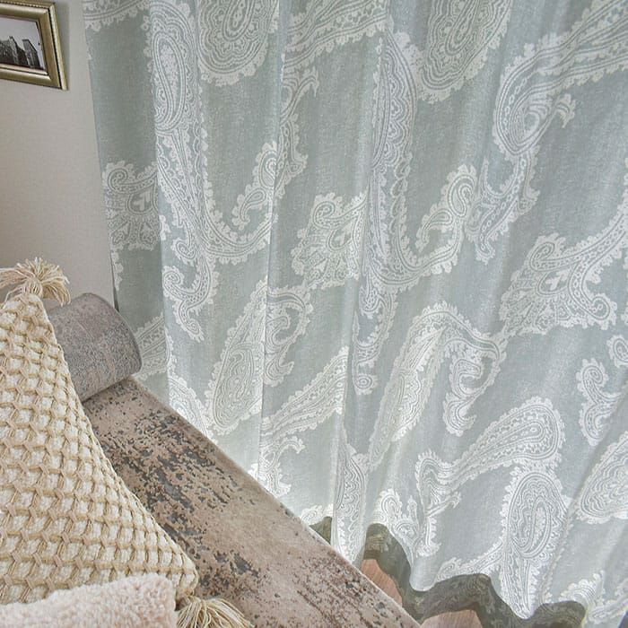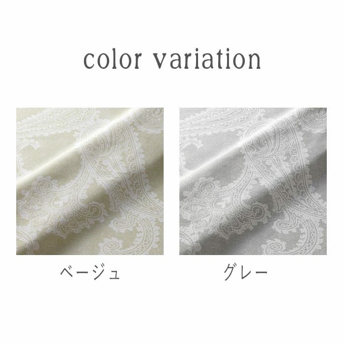▲グレー 淡い色合いが癒しの空間を演出してくれます。 総柄のペイズリーがオリエンタルな印象。 シャビーシックにもアジアンにも幅広く使えます。