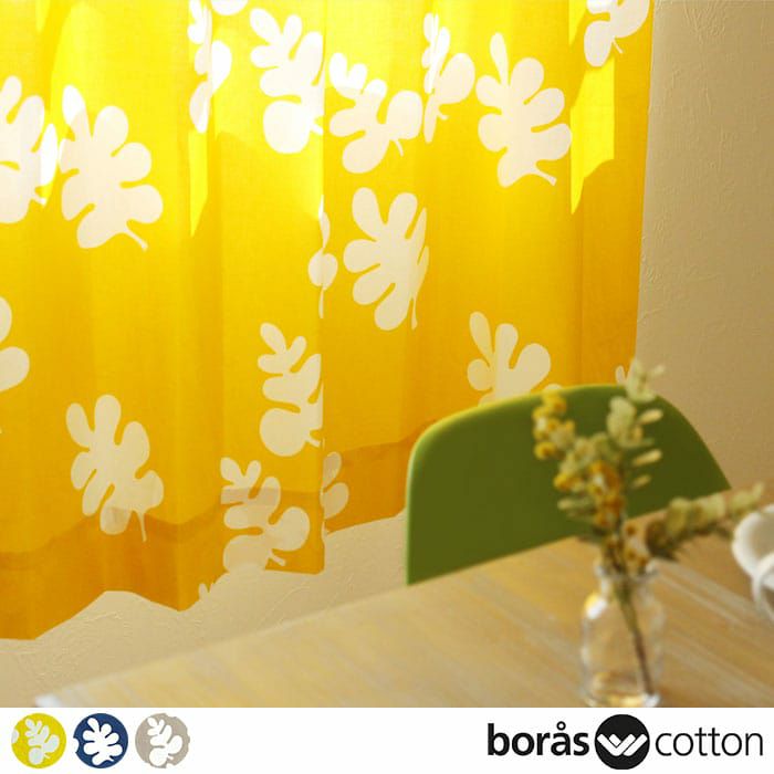 美しい色彩と大胆に描かれた大胆な葉っぱのモチーフが印象的なデザイン 【北欧ブランドカーテン】ハッピーリーブス|ボラスコットン
