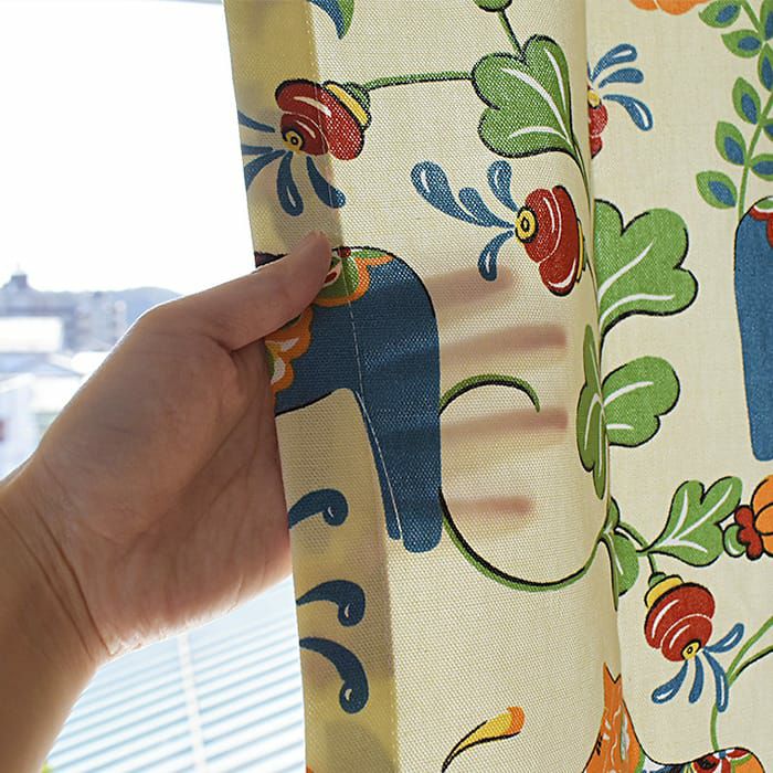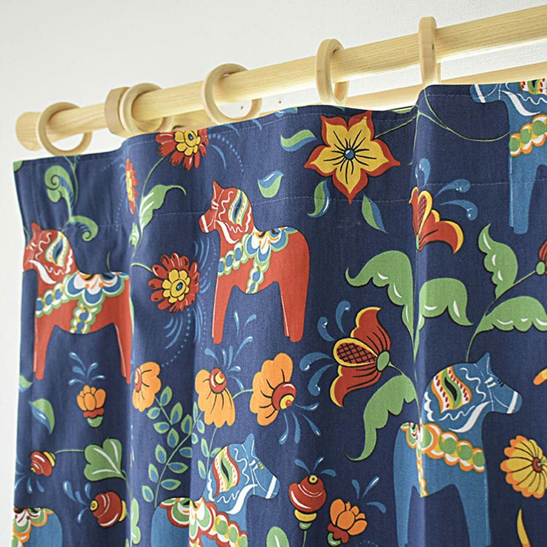 ▲ベージュ 横幅100cm×高さ180cm 2枚 フラット仕様(遮光裏地付) ダーラヘストは、スウェーデン・ダーラナ地方発祥の伝統工芸品の木彫りの馬で、日本では「ダーラナホース」という名前でも紹介されています。 北欧らしい色味とデザインが魅力的です。