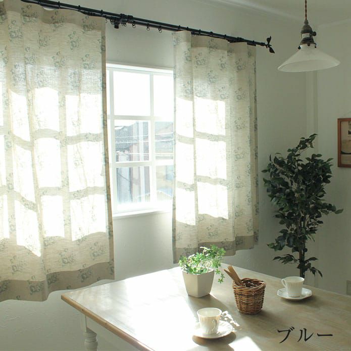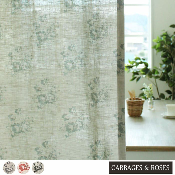 すべてが心地よいキャベジズ&ローゼズのファブリック。 自然な風合いのリネン生地に描かれたバラの花。 この上なく洗練されたエレガントなカーテンです。