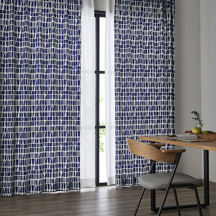 大人モダンな印象が素敵なネイビーインテリア。ブルーカーテンをアクセントとして暗い色で統一することでおしゃれなお部屋へ。ラーリは伝統的な千鳥格子で飽きのこない正統派のカーテンなのでトラディショナルスタイルな雰囲気になります。