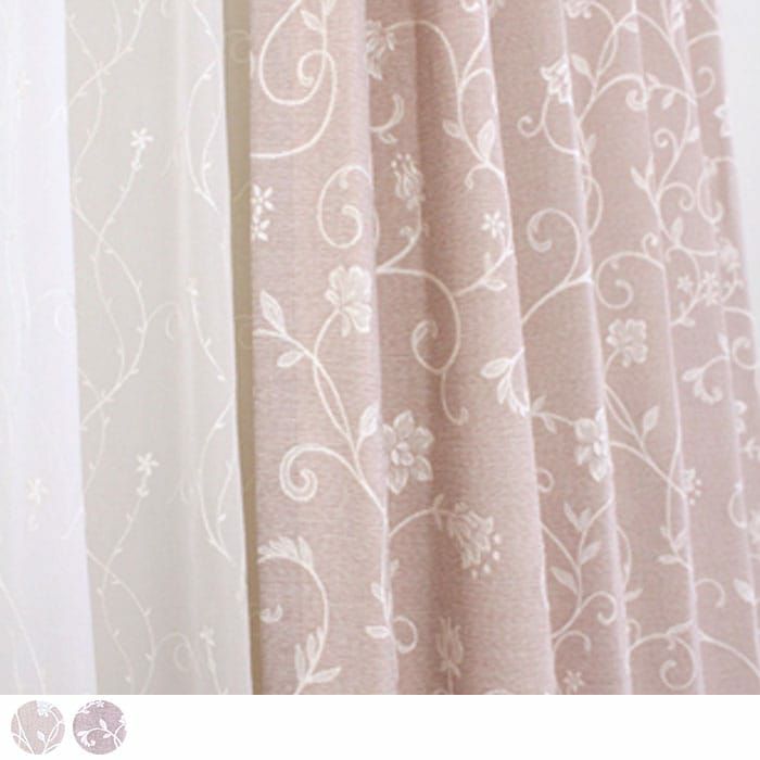 白い家具やアンティーク雑貨にも映えるカーテン。 愛らしいピンクと落ち着いたパープルの2色をご用意いたしました。 非遮光カーテンなのでお部屋に程よく光を取り込みます。