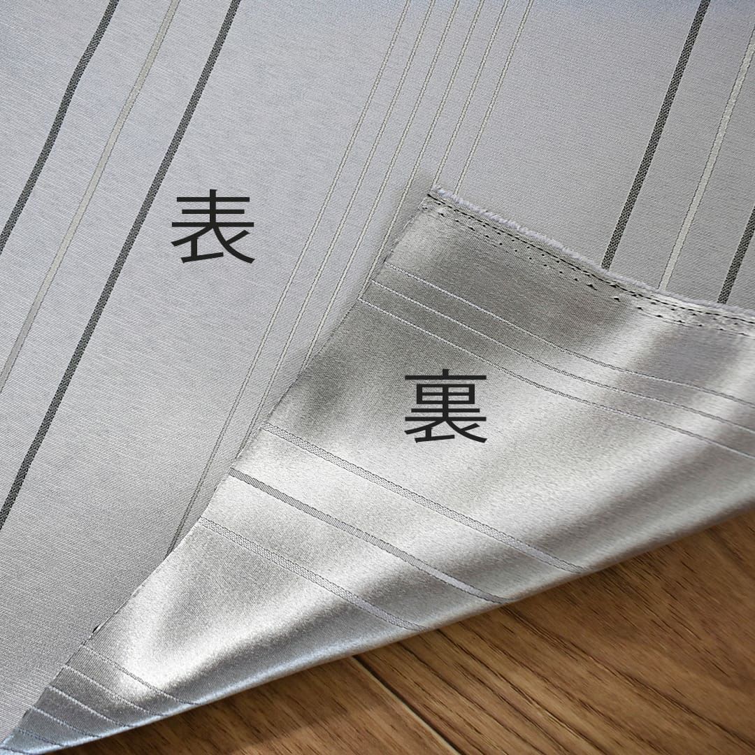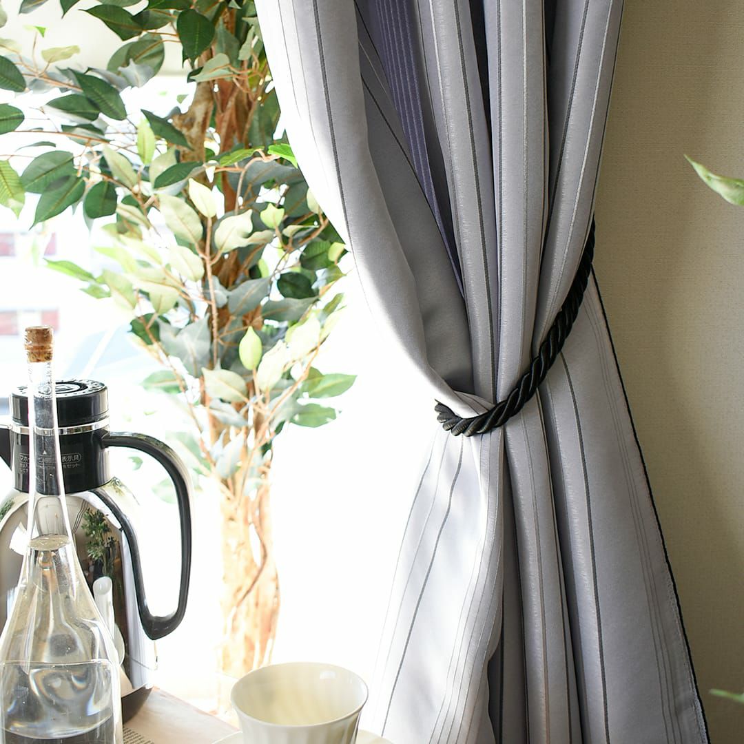 表裏ともに光沢がありますが、裏の方が光沢が強いです。 黒の縦ラインですっきりと見え、モダンなお部屋におすすめです。 ※写真のタッセルは別売りです。