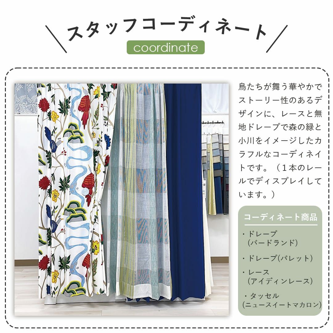 生地をカーテンに仕立てる際、製作幅が大きい場合は生地を横に繋いでいくので カーテンの仕上がり幅によっては継ぎ目ができます。(継ぎ目の位置指定はできません。) 詳しくはこちらをご確認ください。