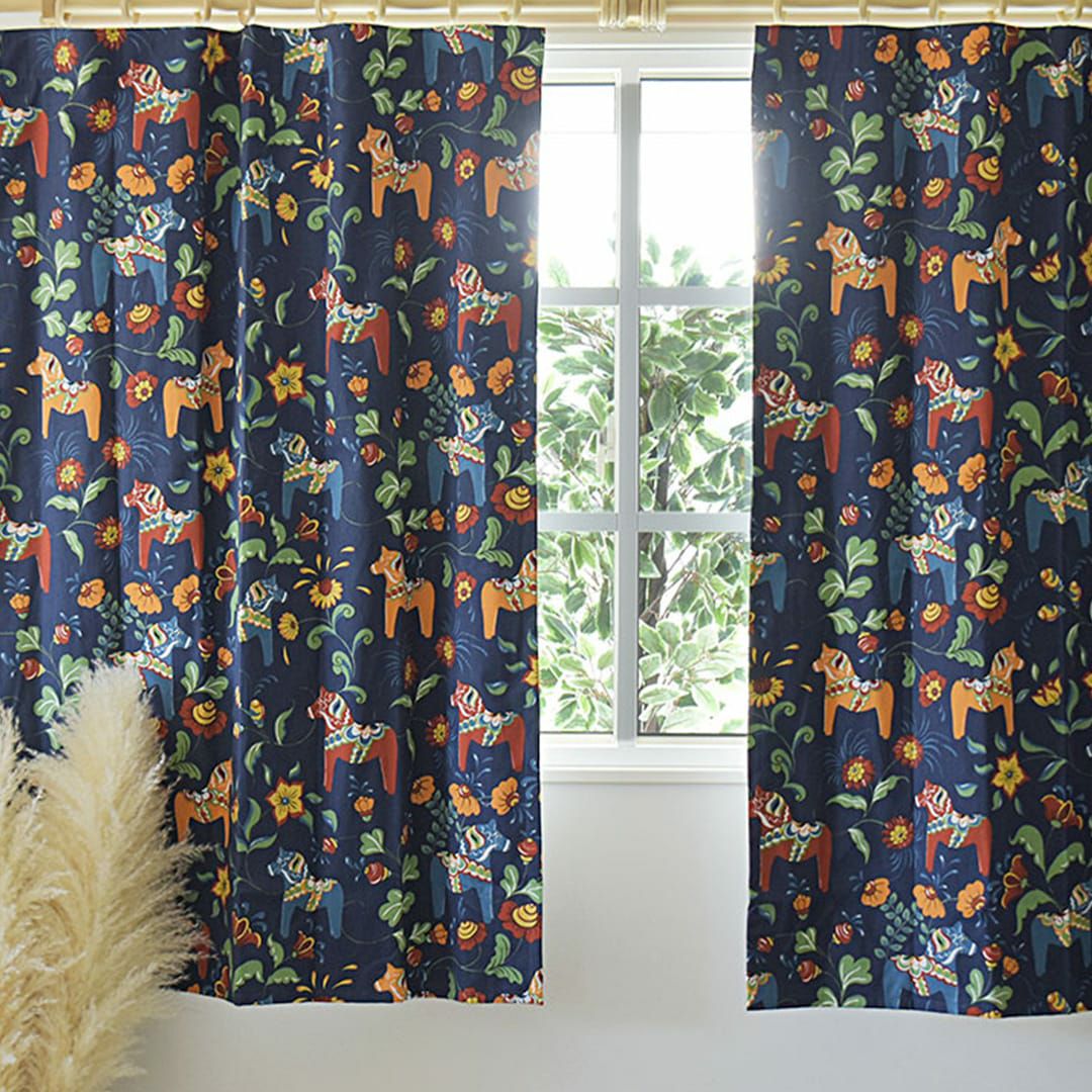 ▲ベージュ 横幅100cm×高さ180cm 2枚 フラット仕様(遮光裏地付) ダーラヘストは、スウェーデン・ダーラナ地方発祥の伝統工芸品の木彫りの馬で、日本では「ダーラナホース」という名前でも紹介されています。 北欧らしい色味とデザインが魅力的です。