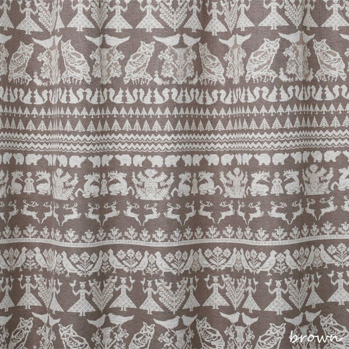 森の中にいる女性とフクロウをモチーフにしたカーテン。 女性の横にはハートの形になっている木があり、満ち溢れた愛を感じます。 レースカーテン「ナイト イン ザ フォレスト ボイル」と合わせるとより神秘的な雰囲気に!