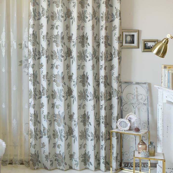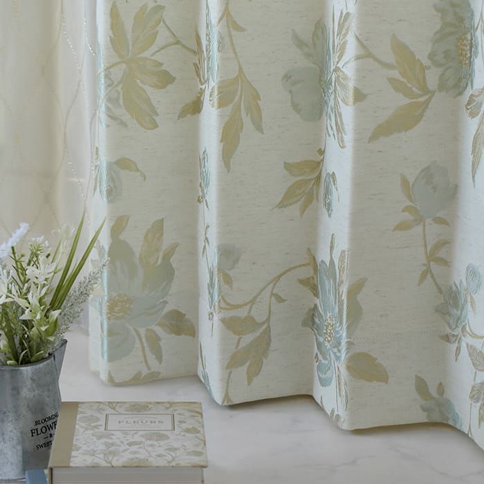 西洋ツツジ(仏:ラザレ)をモチーフにしたカーテン。 大きな西洋ツツジがジャガード織で織り込まれています。 生地はポリステルに麻を混ぜたものを使用。麻のようなナチュラルな素材感がでており、 エレガントな柄ですが、ナチュラルテイストのお部屋にも合います。 ※写真は全て1.5倍ヒダ+形状記憶ありです。