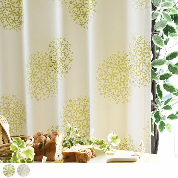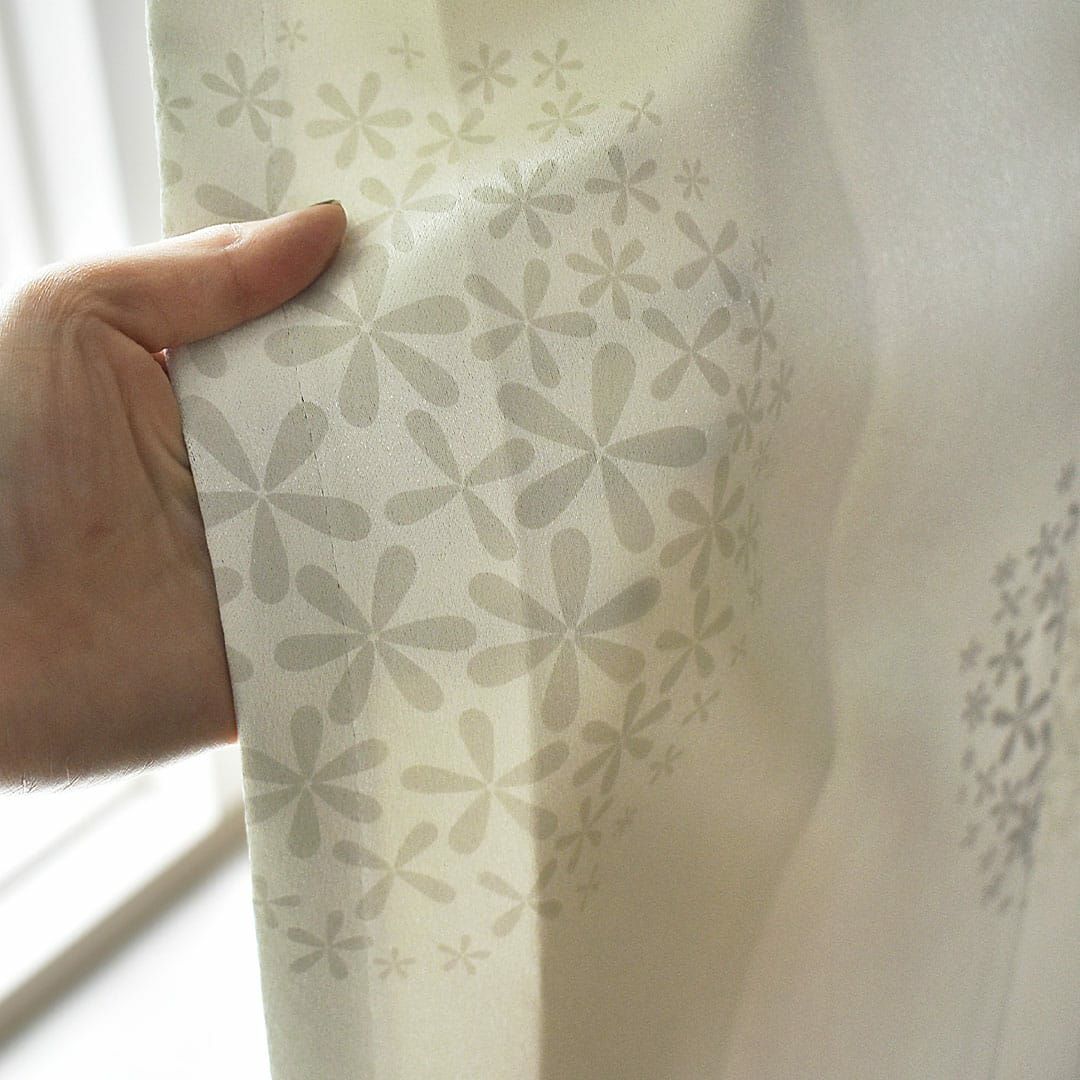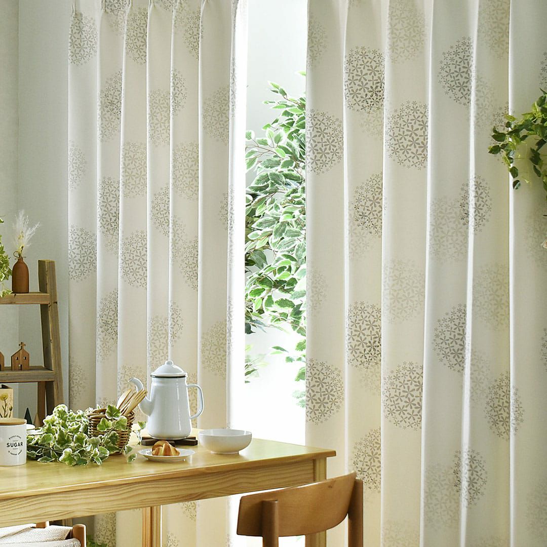 ▲アイボリー 北欧の森シリーズのナチュラルなデザインのカーテンです。 小さなお花が集まって、大きなお花の花火のようなデザインです。 アイボリーの生地にグレーのお花プリントで可愛らしく上品なイメージでお部屋に馴染みやすいカラーです。