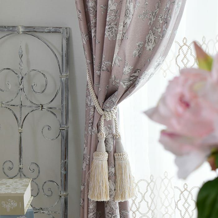 バラと小鳥をモチーフにしたシャビーシックなカーテン