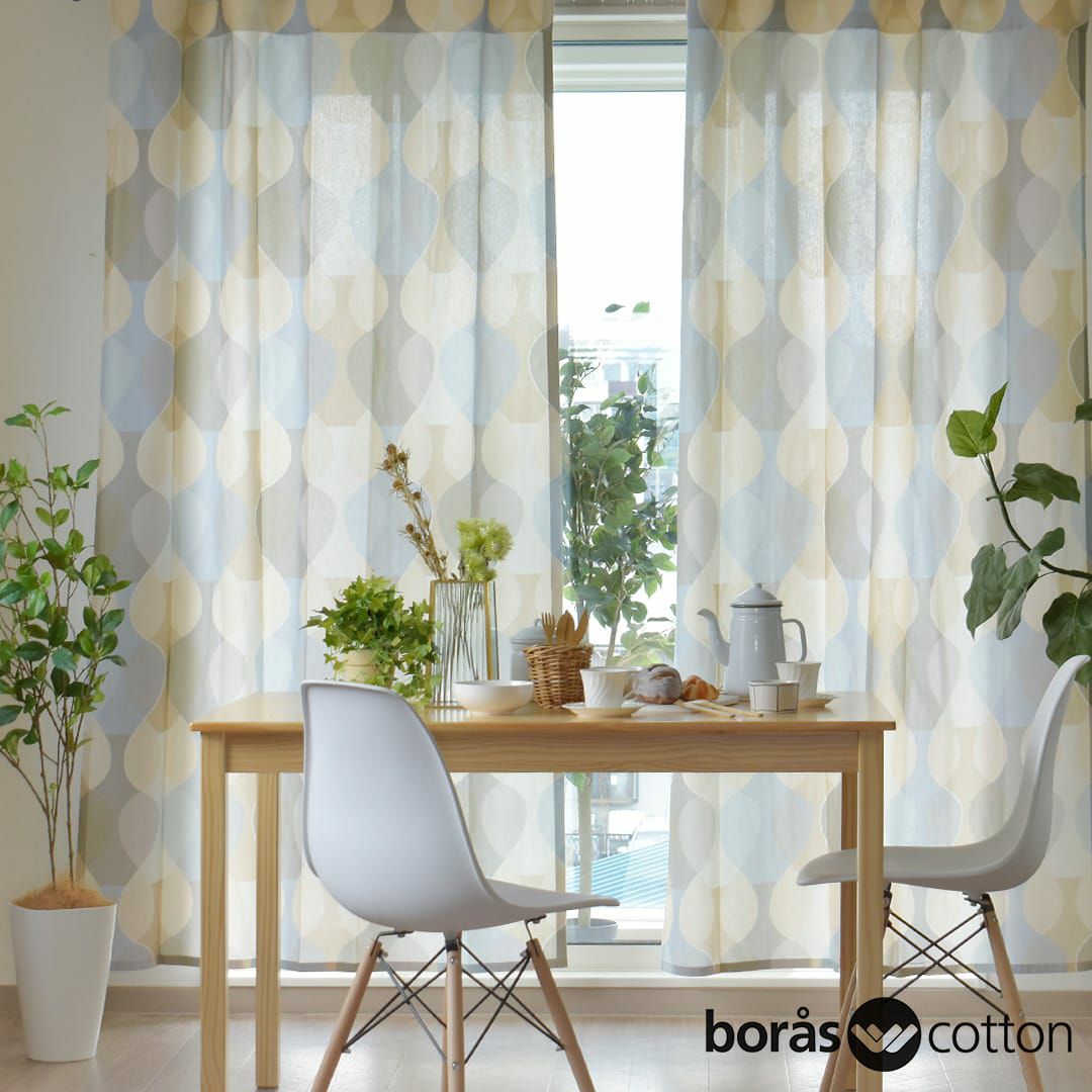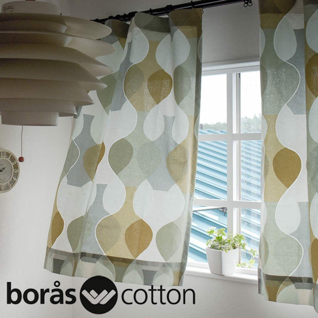 デザイナー Mona bjork(モナ・ビヨルク)による名作。 曲線と色が交じりあったユニークなデザイン ボラスコットンの中でも特に有名で代表的な生地です