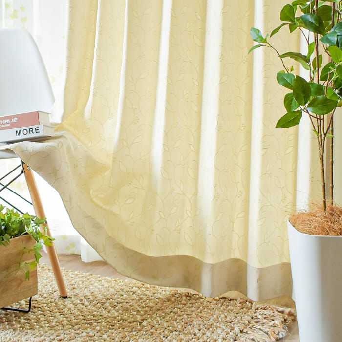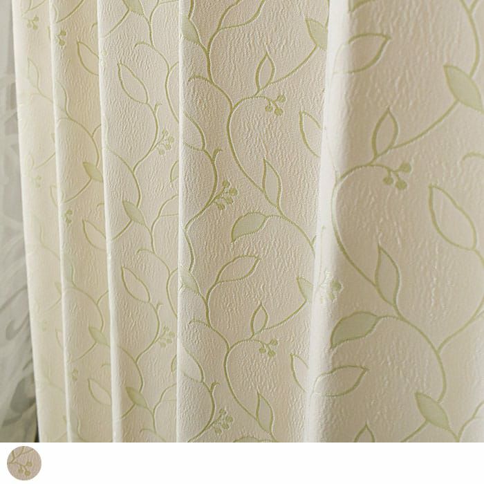 優しい色合いなのでどのお部屋でも馴染みます。 リビングやナチュラルテイストのお部屋にオススメです。 ▲写真は1.5倍ヒダプレミアム縫製+形状記憶加工です。 安定したきれいなヒダなら形状記憶加工をご指定ください。