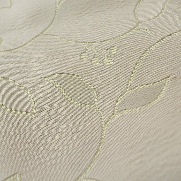 グリーンがかったベージュの生地にグリーンのツタ柄のデザインです。 凹凸があることで日差しを受けた時に優しく浮かび上がります。