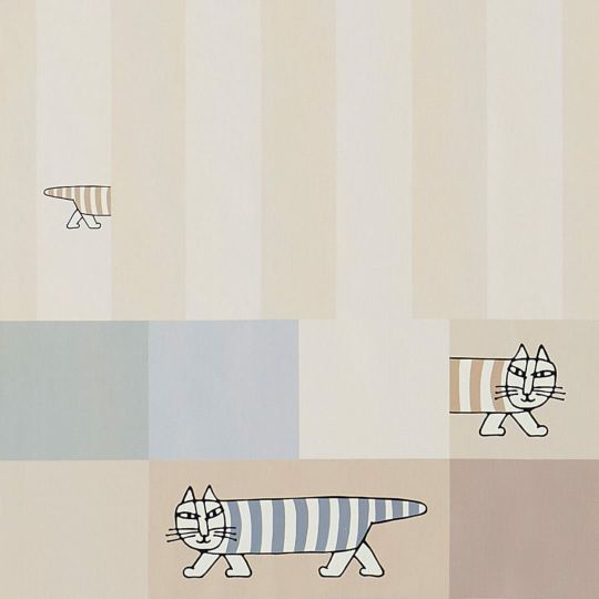 北欧カーテン「リサ・ラーソン」シリーズ しましま模様からひょっこりのぞく姿がとてもキュートなマイキー 綿100%素材でナチュラルな風合いと上質な質感も魅力的です