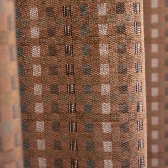 縦糸と横糸で織り込まれた柄がモザイクのよう。 明るすぎず暗すぎず、落ち着いた色合いの組み合わせで お部屋に変化をもたらすカーテンです。