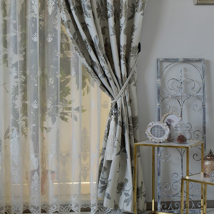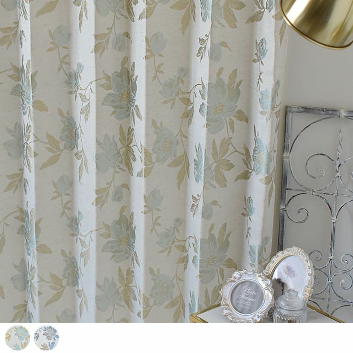 西洋ツツジをモチーフにしたジャガード織カーテン 【カーテン】シャビーラザレ