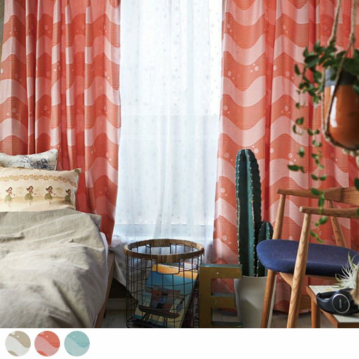 海の波をイメージしたデザイン お好みの海の色に合わせてください。 軽やかで薄い生地なので風通しのいい気持のいいお部屋に。