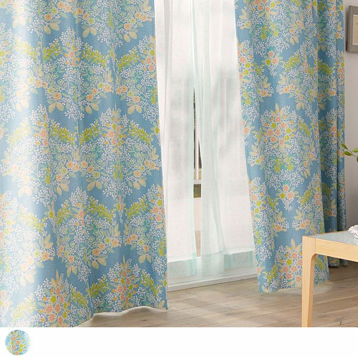 花びらと葉の色の移ろいが繊細なプリントで表現されている北欧遮光カーテン。 ブルーは引き締まった印象でお部屋を演出します。 鮮やかなカラーでお部屋をパッと明るくしてくれます。 遮光2級なので程よく光を遮ってくれますよ。