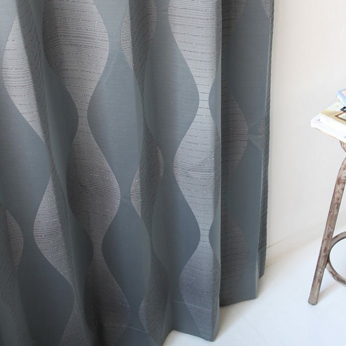 ▲グレー 存在感がありながらもインテリアに溶け込むカーテンがついに登場。 光沢のあるウェーブラインと素材感のある地模様が見事にマッチング。 落ち着いた雰囲気も優しい雰囲気もゴージャスな雰囲気も併せ持っているので、 いろいろなお部屋にお使いいただけます。