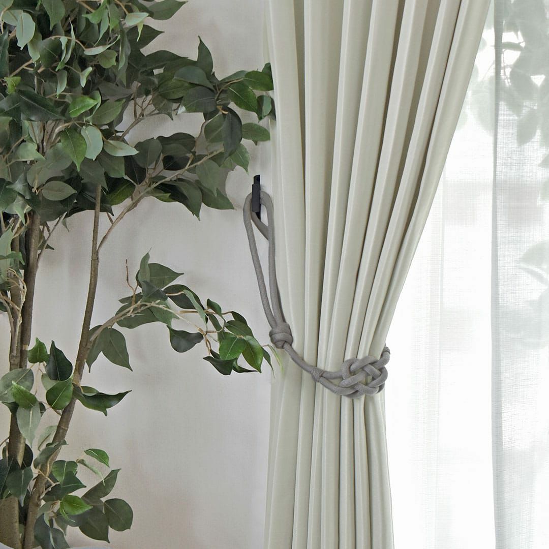 ▲タッセル:リンク(ライトグレー) 2級遮光で夜は外の光を遮り、朝はほどよく太陽の光を取り入れてくれます。 他にも遮熱・防炎といった暮らしを快適にする機能がついています。