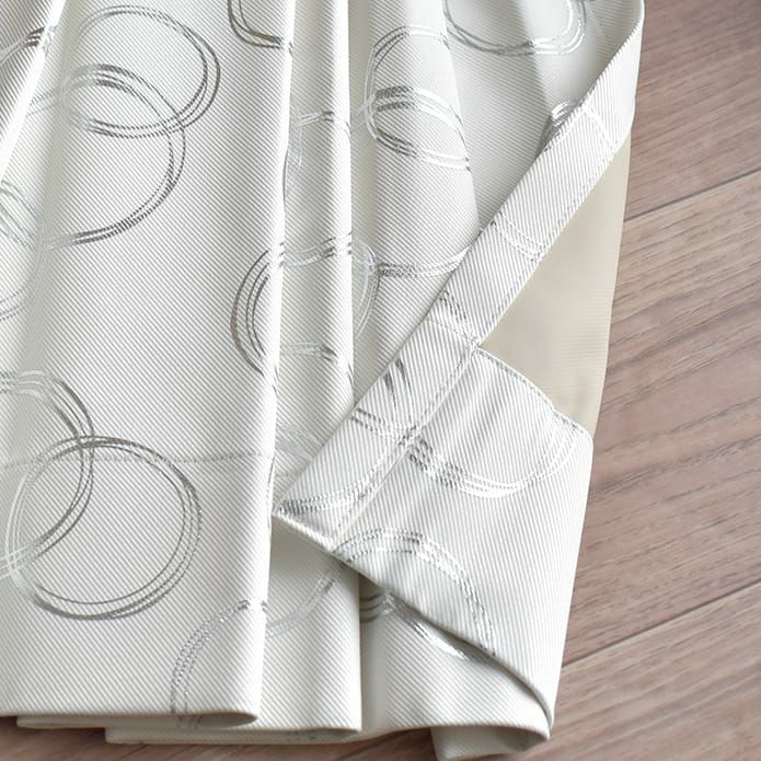 完全遮光、防音機能あり!線で描かれたダリアの花柄がエレガントな遮熱カーテン