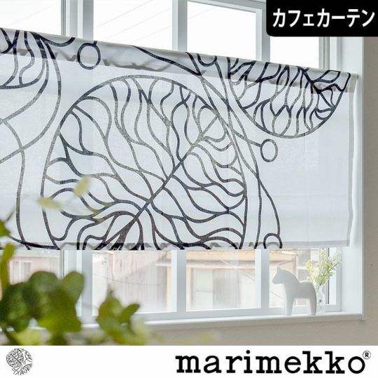 【アウトレット50%OFF】北欧カフェカーテン ボットナ(ブラック)|Marimekko|幅40cm×丈95cm【サイズカット可】