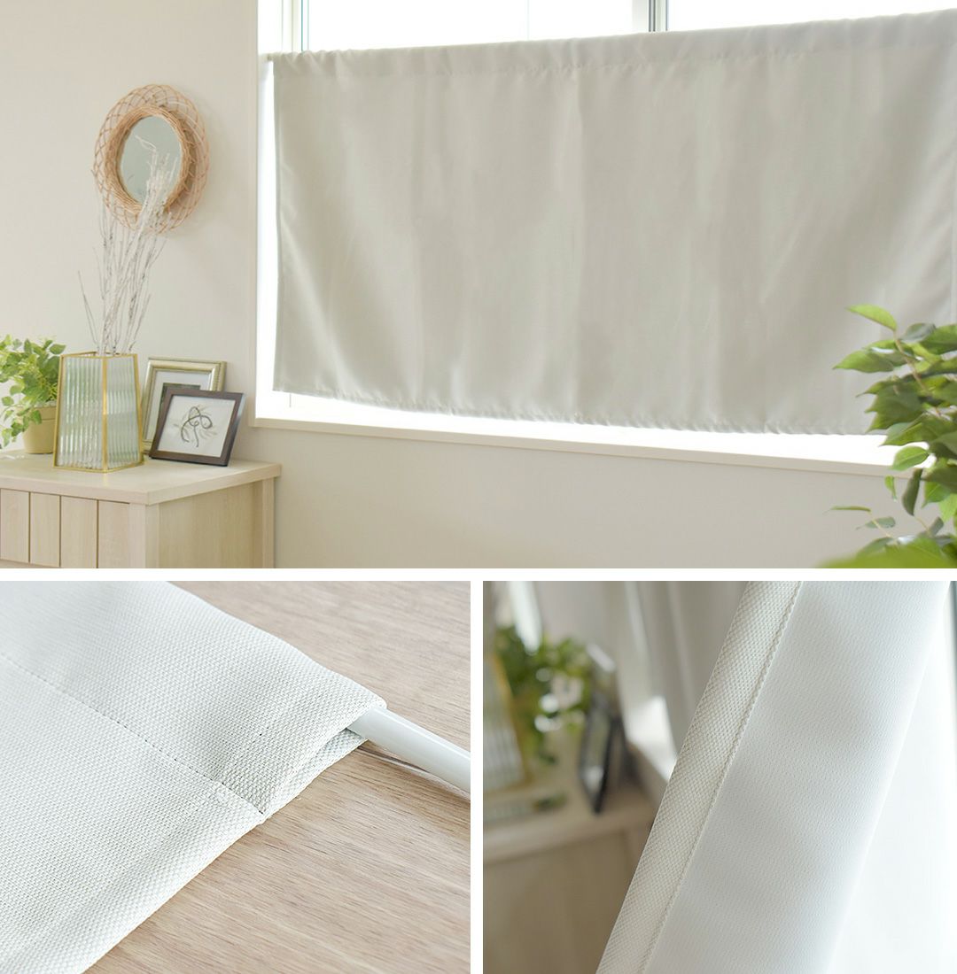 光沢のある糸とマットな糸の織りがかわいらしい、無地カフェカーテン。