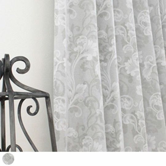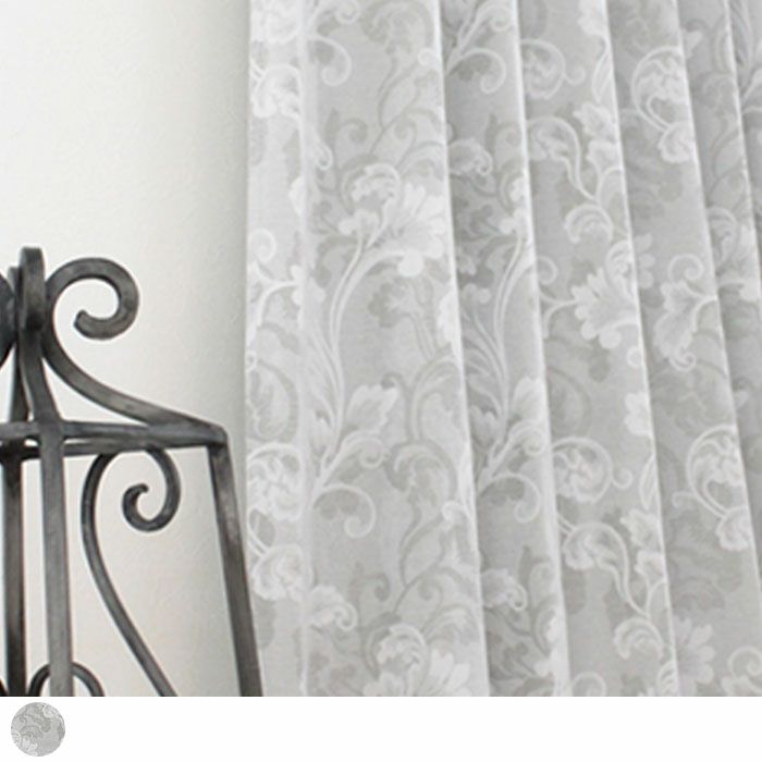 ホワイトとグレーの花模様がエレガントな非遮光カーテン
