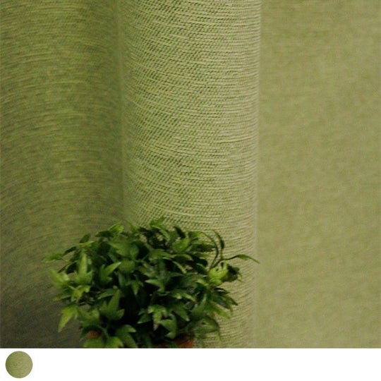 光沢のある糸とマットな糸の織りがかわいらしい、グリーンの無地カーテン。