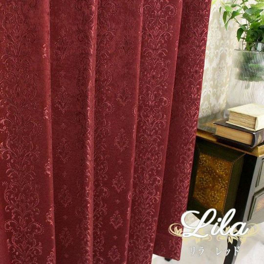【アウトレット60%OFF】カーテン リラ(レッド)|幅70cm×丈208cm 1枚