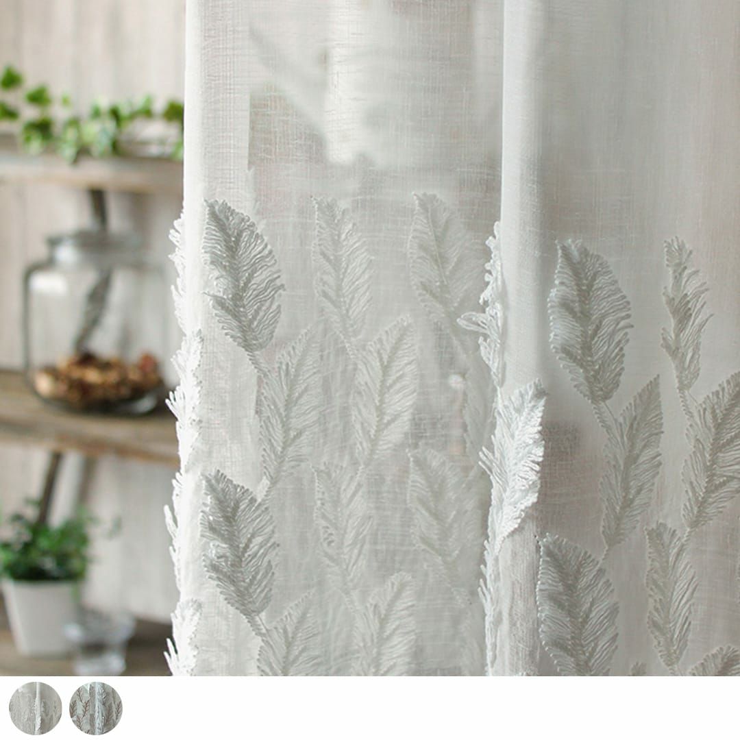 ざっくりとした生地にリッチな刺繍。 ナチュラルかつゴージャスな刺繍レースカーテンです。 天然素材のカーテンと相性抜群◎!