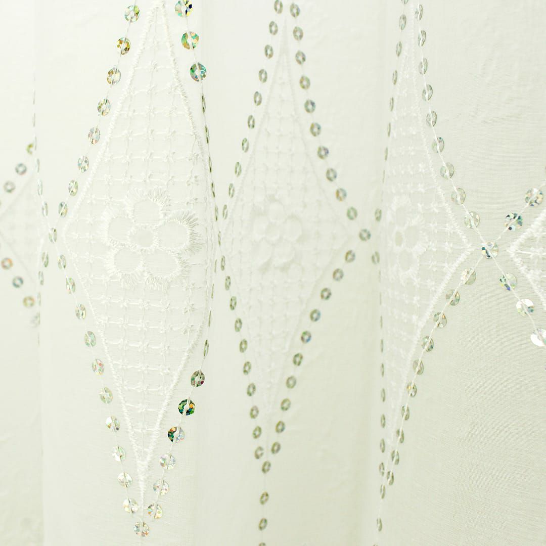 カーテンの仕上がり幅に対して約2倍の生地を使います。たっぷりとしたドレープでレースの優美さが際立ちます。