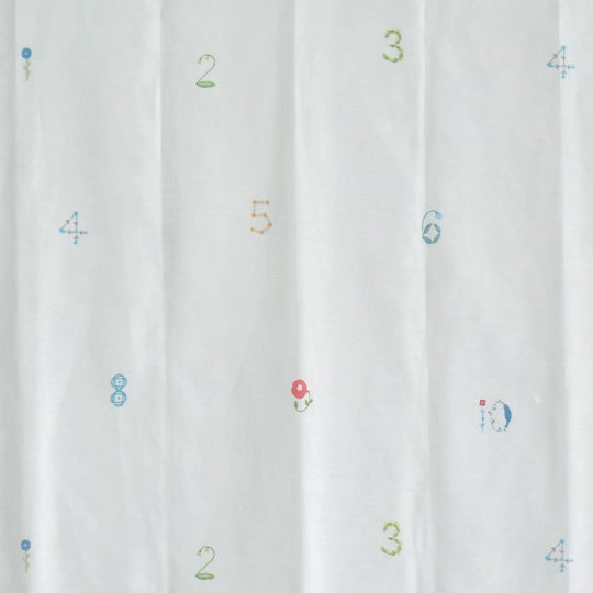 レース生地に1から10の数字を草花で描いた3級遮光カーテン 数字のどこかに小鳥が隠れています♪