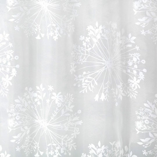 きれいなシルエットの花束を大胆&繊細にレイアウトし、オパールプリントで表現した北欧風ボイルレース生地。